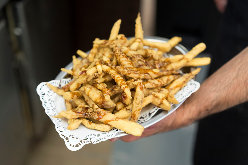 Fried eggplant drizzled with cane honey—crispy, sweet, and impossible to stop eating.